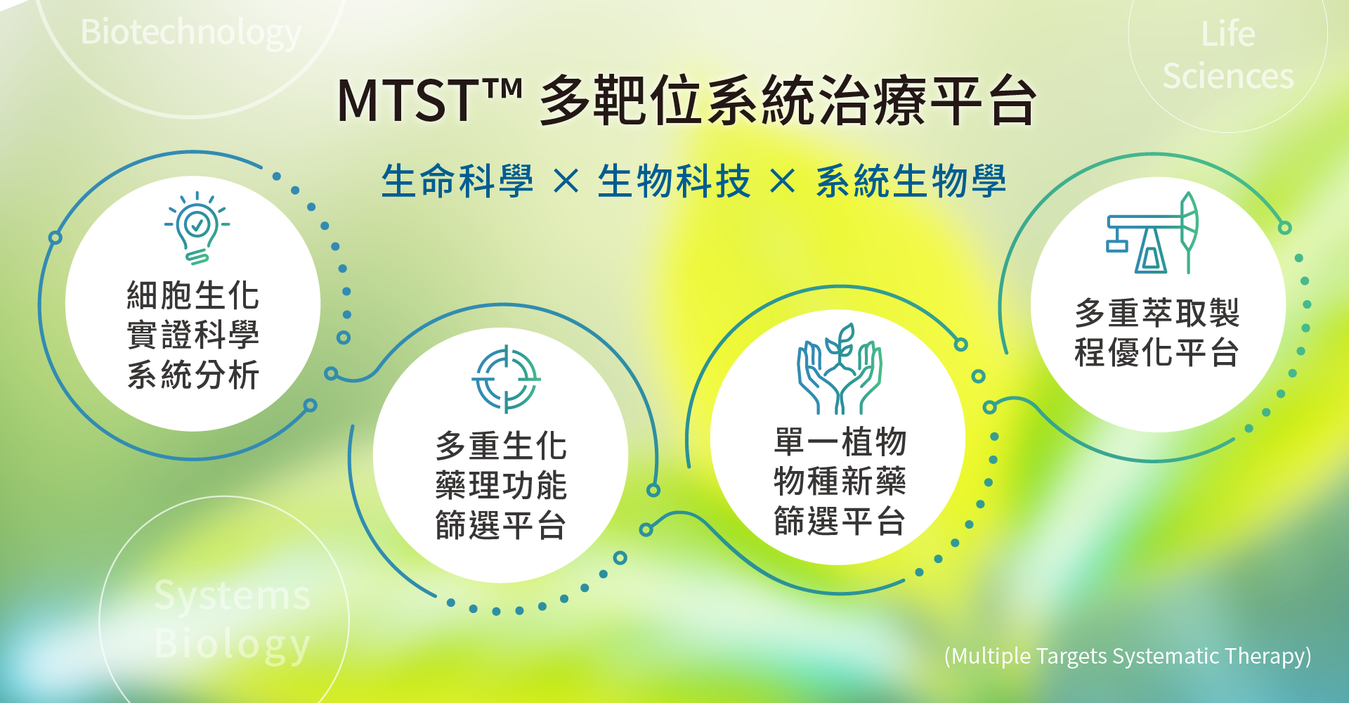 MTST™ (Multiple Targets Systematic Threapy)平台是本公司專為植物新藥研發設計的核心評估與篩選系統。